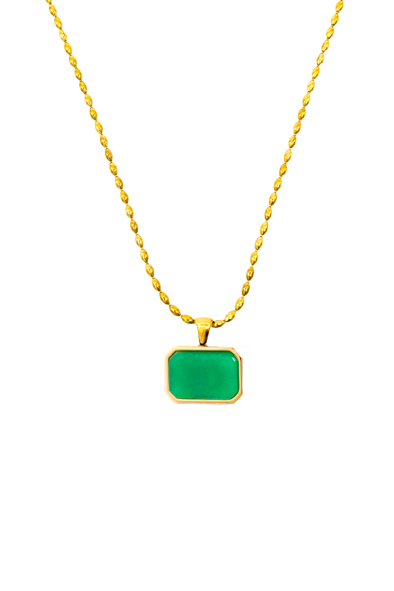Una collana dal fascino essenziale con ciondolo rettangolare dagli angoli smussati, incastonato in una cornice dorata. Talismano valorizza vere pietre naturali: ogni esemplare è unico per venature e riflessi, perfetto per aggiungere un tocco di colore al quotidiano senza rinunciare all’eleganza.